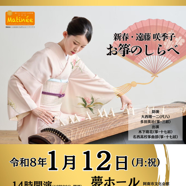 日時 2026年1月12日(月・祝)14:00開演(13:30開場) 会場 阿南市文化会館 夢ホール...