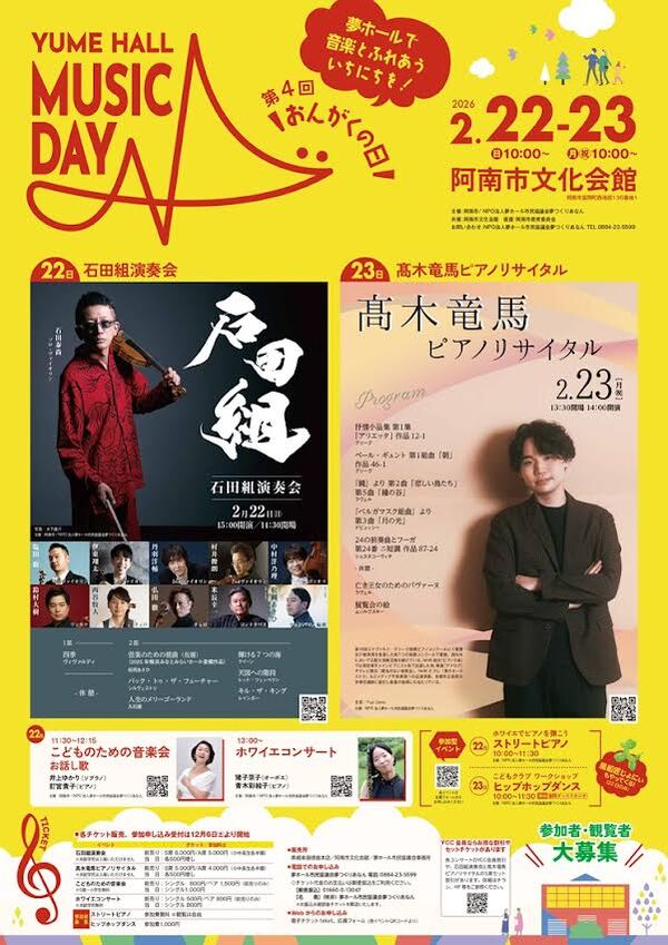 日時 2026年2月22日(日)10:00~/23日(月祝)10:00~ 会場 阿南市文化会館 夢ホール 各イベ...