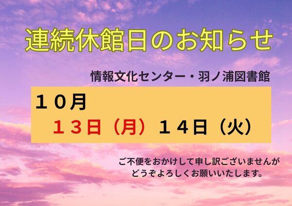 10月は、連続休館日がございます