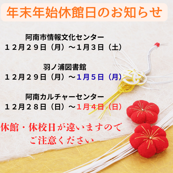 年末年始休館日のお知らせ